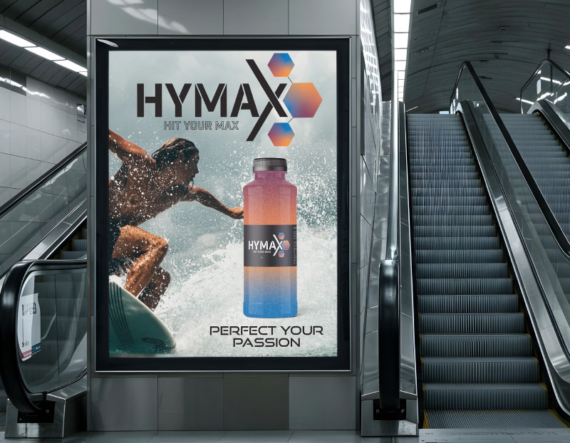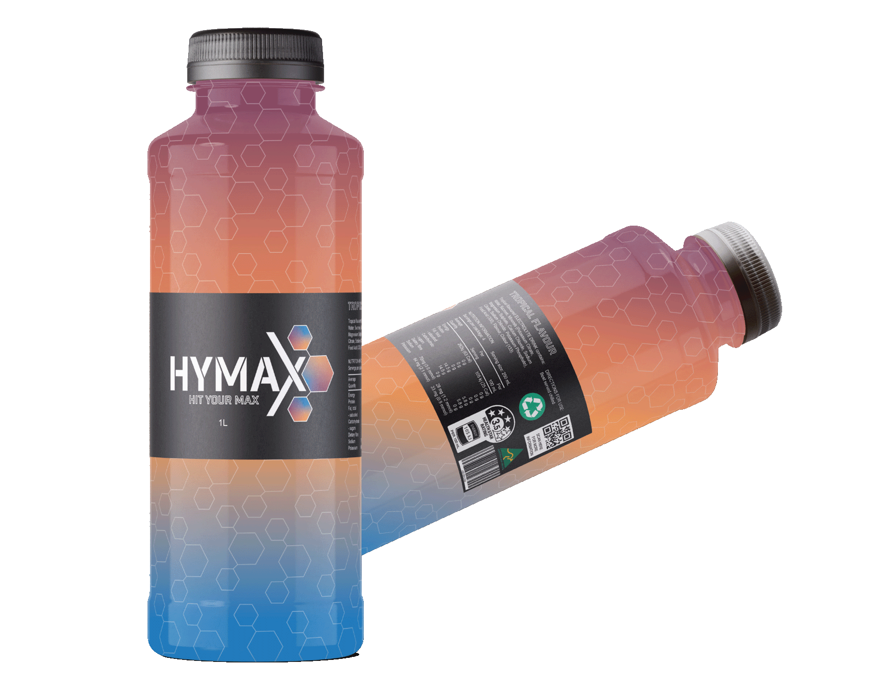 The name HYMAX came from combining hydrate and maximum, expressing peak performance and hydration. The tagline “Hit Your Max” ties perfectly with the letters HYM that start HYMAX, reinforcing the idea of pushing limits.