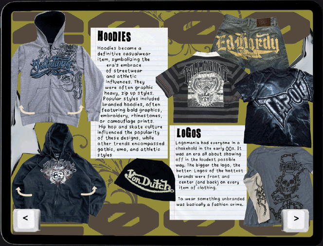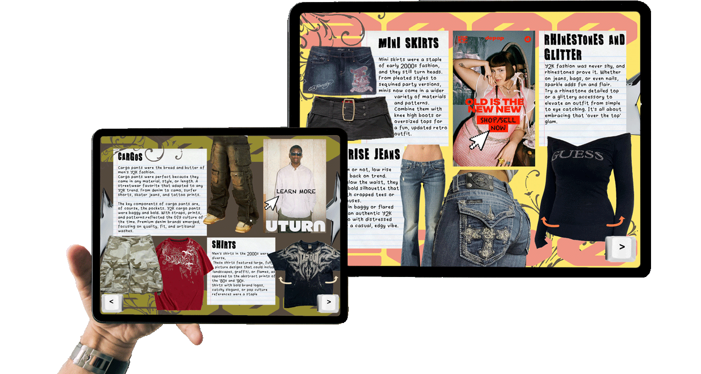 I created an interactive ePub magazine on the topic of Y2K fashion making its comeback, exploring the revived trends and influences from the early 2000s. The three feature articles each cover different aspects of the revival (mens fashion, female fashion and unisex accessories) with a bold, nostalgic design.